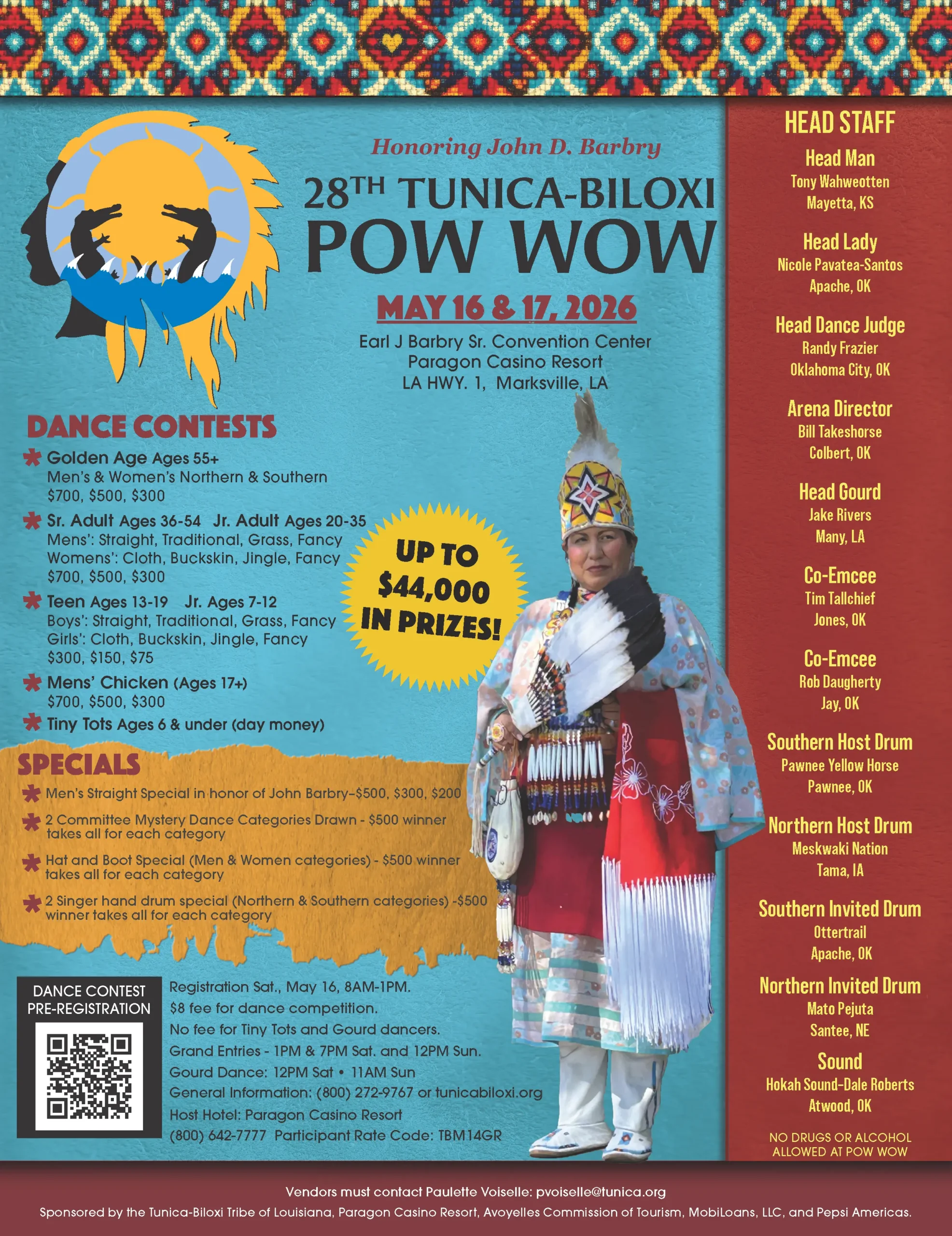 Are you ready to stay connected and updated on our 2026 Tunica-Biloxi Pow Wow? Click here to follow us on Facebook!